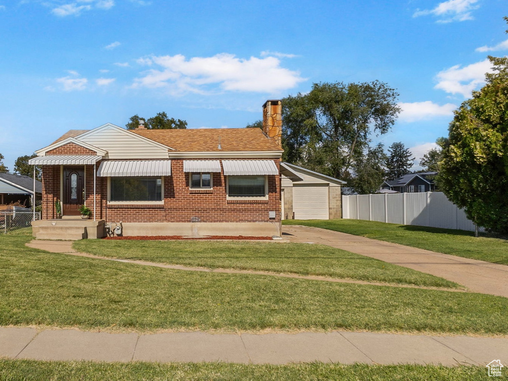 Welcome to this charming all brick rambler. Inside you will find a modern kit. w/ceramic tile flooring, solid wood cabinets, gas stove and frig. included. Updated flooring & paint through-out, 2nd family room down and several built-in. Don't miss the detached, double deep 28'x40' 4-car garage with an 8' & 9' door, plenty of room for everything. This home has lower utility bills with updated 95% furnace/AC (Trane) in 2022, hot water heater, updated modern windows (vinyl double pane) and new roof in 2019. Like new carpet throughout, all high-density nylon, fresh paint, and full sprinkler system. Convenient to a large park, elem. school and shopping down the road. Stop by and see this one today!!